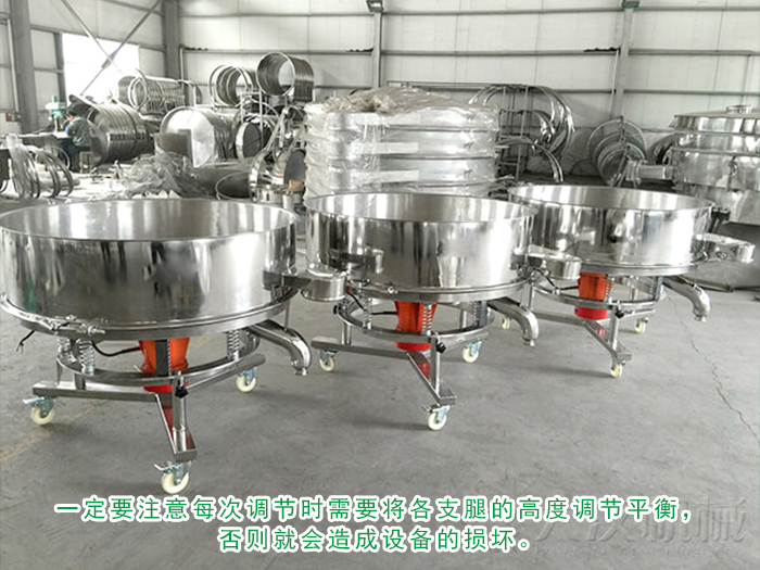 由于大多數客戶在購買高頻振動篩時,都要求將支架設計成可調節高度,因此客戶在使用現場調節支架高度時一定要注意每次調節時需要將各支腿的高度調節平衡,否則就會造成設備的損壞。